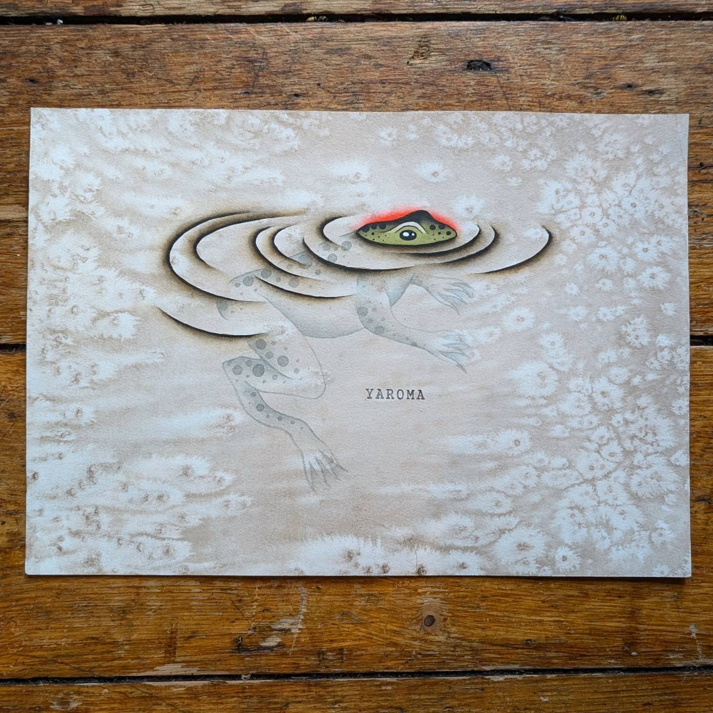 its a frog, in water, but also a little bit not in the water. A4 print of a painting made with acrylic inks